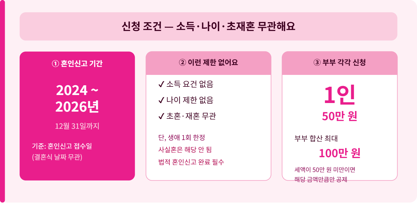2024๋ ๋ถํฐ 2026๋ ์ฌ์ด์ ํผ์ธ์ ๊ณ ํ๋ฉด 1์ธ๋น 50๋ง ์, ๋ถ๋ถ ํฉ์ฐ ์ต๋ 100๋ง ์์ ์ธ๊ธ์์ ์ง์ ๊น์์ค์. ์๋๊ณต์ ๊ฐ ์๋๋ผ ์ธ์ก๊ณต์ ๋ผ์ ํจ์ฌ ์ง์ ์ ์ด์์.